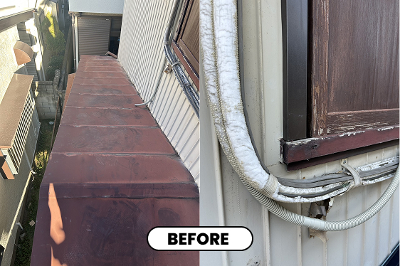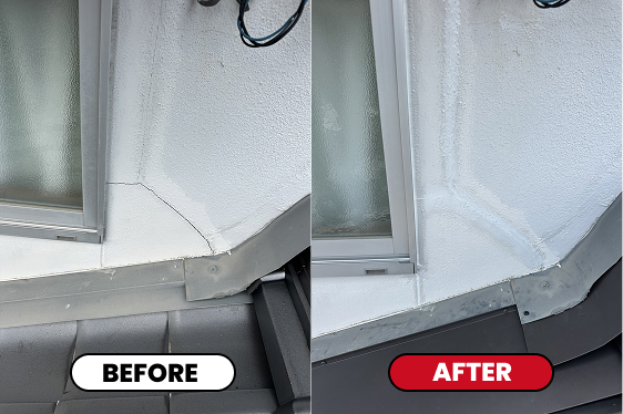 今回の修繕では、屋根だけではなく壁にも雨漏りの原因となる個所を発見。今後、原因になりうるところにもコーキングなどを実施し、未然に防ぐ防止措置も行いました。