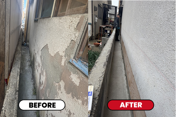 家屋の外壁は、長年の風雨・温度変化の影響を受けてダメージが蓄積されます。特に、「外壁の浮き」は、深刻な問題を引き起こします。経年劣化で外壁が浮き上がって崩れ落ちそうになっていた為、外壁サイディング工事を施工しました。