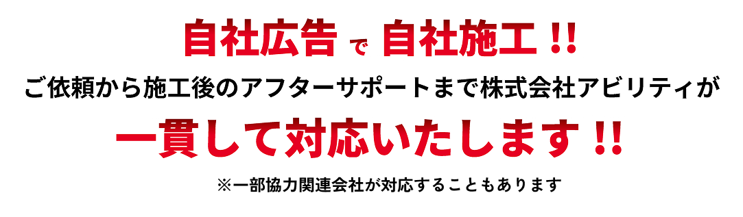 広告・施工・サポートのすべてを自社で一貫して行う体制を整えています。